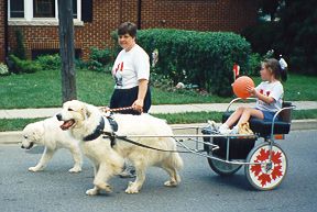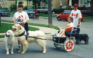 Here we are in Paris, Ontario, taking part in the annual Canada Day Parade held on July 1 each year. This parade was Sammy's first public carting appearance in 1996, so we were really happy to come back again this year. The group was a major hit!